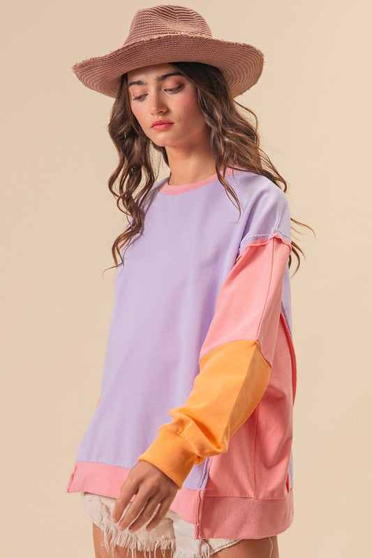 BiBi USA Letter Patchwork Contrast Short Sleeve T-Shirt
