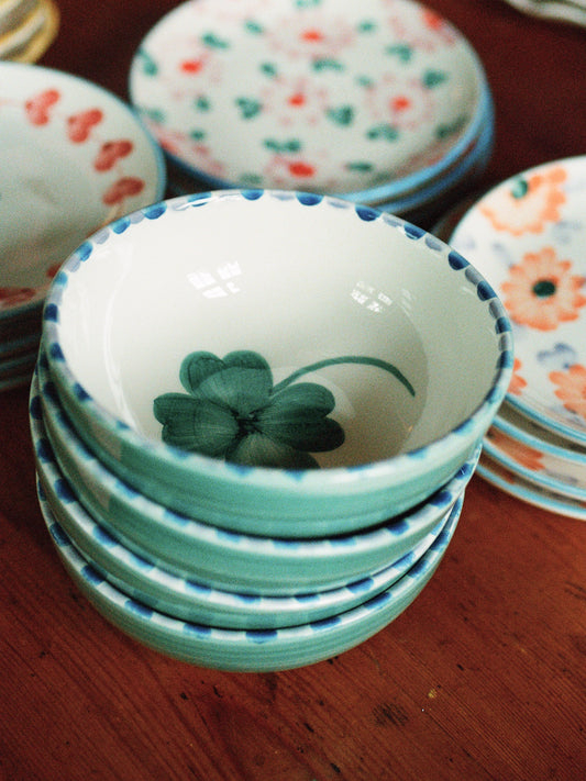 Ceramic Bowl with Hand Painted Good Luck Clover - 11.8 oz