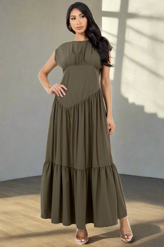 BY CLAUDE Olive Boat Collard Maxi Dress