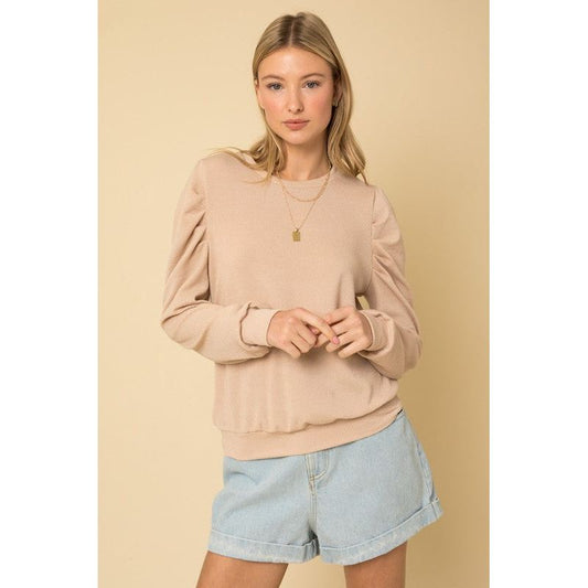GILLI LONG SLEEVE PUFFED SHOULDERS SWEATER TOP