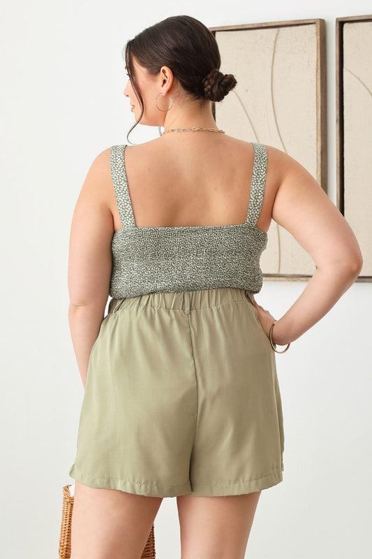 ZENOBIA Plus Size Half Elastic Waist Shorts with Pockets