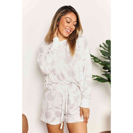 DOUBLE TAKE Floral Long Sleeve Top and Shorts Loungewear Set