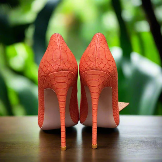 TIKICUP Orange Croc-Print Pointy Toe Stiletto Pumps