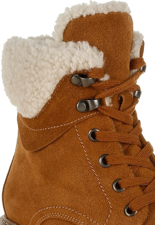 RAG & Co. Madoka Fur Collar Lace-up Snow Ankle Boots