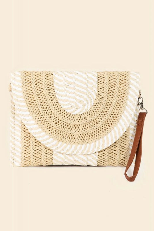 Fame Women's Woven Striped Straw Stitch Clutch Bag