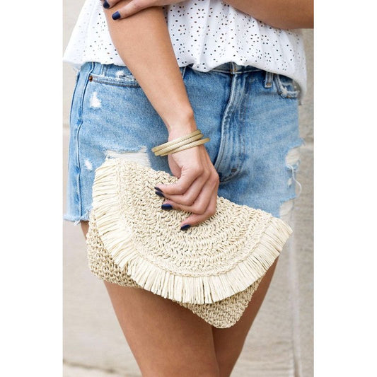 AILI'S CORNER Frayed Fold-over Straw Clutch