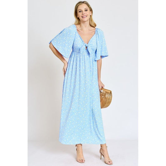 EG FASHION Floral Angel Sleeve Front Tie Maxi Dress
