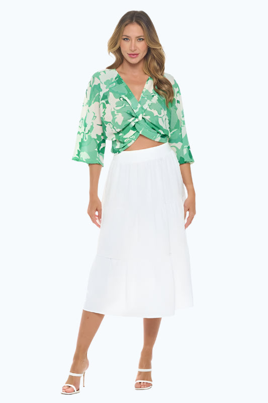Renee C. Women's Kelly Green Floral Mid Sleeve Top with Front Twist