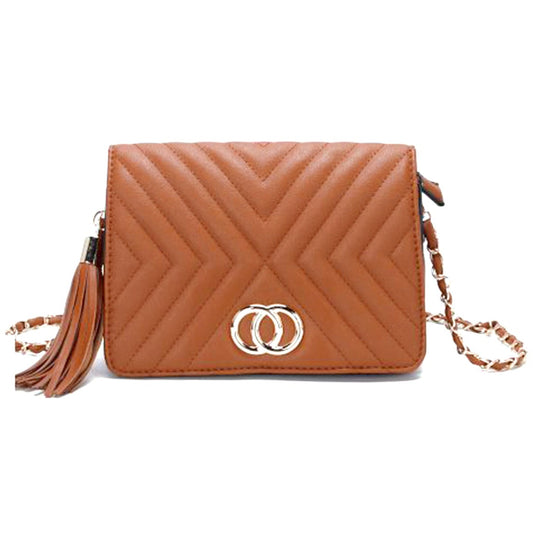 Fashion Double Metal Pattern Stitching Tassel Crossbody Bag