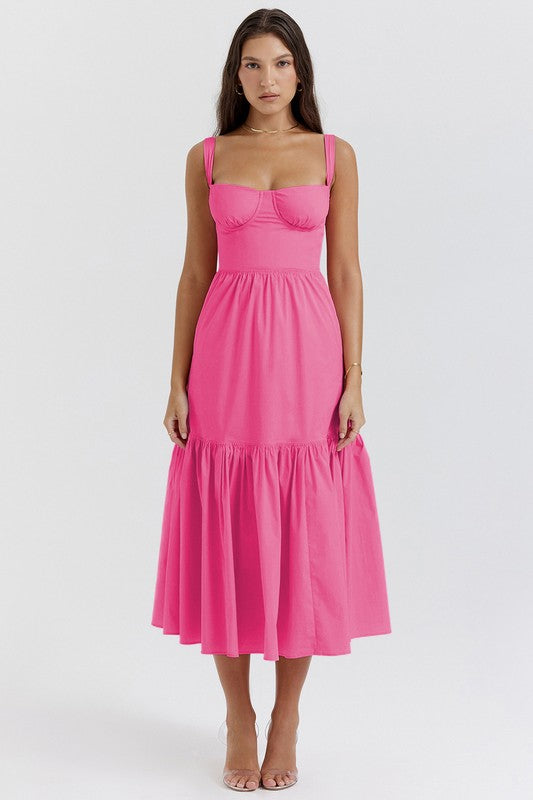 CLAUDE Women's Pink Fitted Strap Dress with Sweetheart Neckline