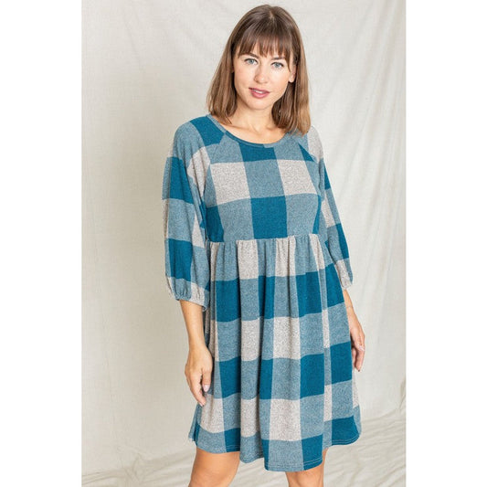 EG FASHION Plaid Balloon Sleeve Midi Dress
