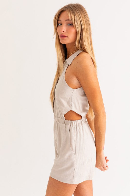 LE LIS Women's Taupe Collared Sleeveless Side Cutout Romper