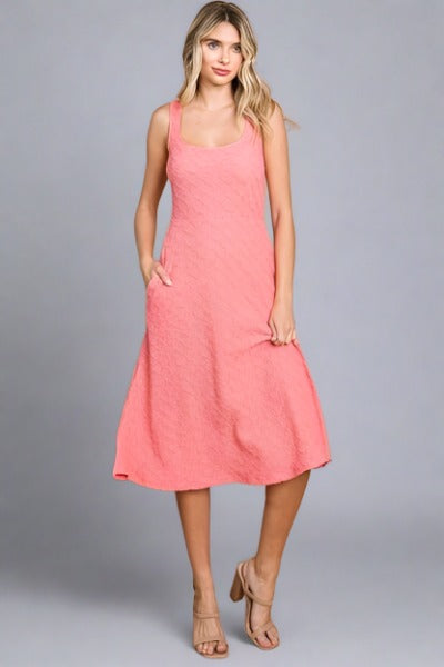 CULTURE CODE Texture Happy-Pink Square Neck Tank Dress with Pockets