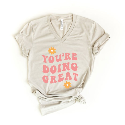 OLIVE & IVORY You're Doing Great Flowers Graphic V-Neck Tee