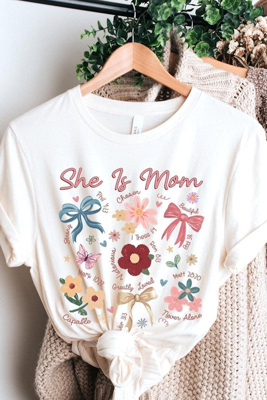 COLOR BEAR Mother's day "She is Mom" Christian Graphic Tee