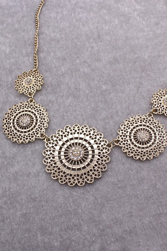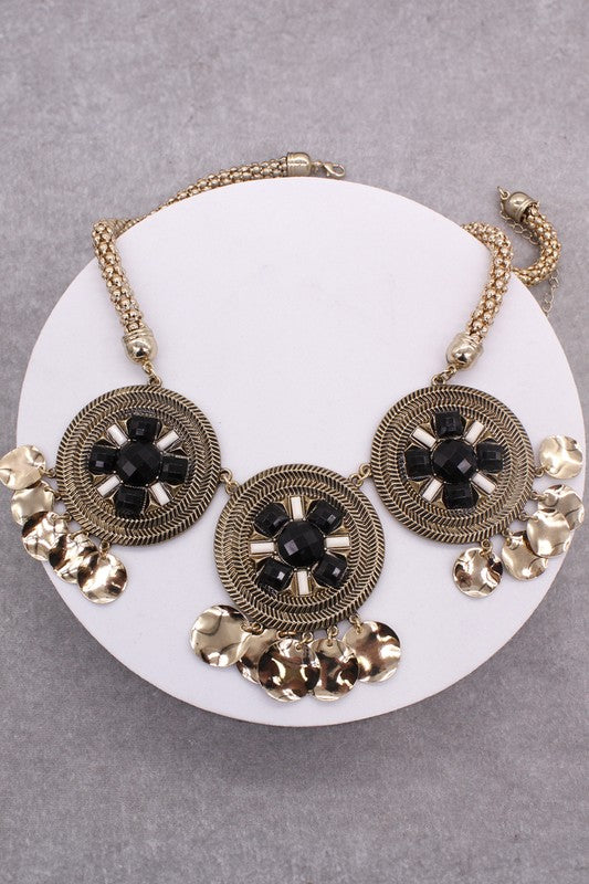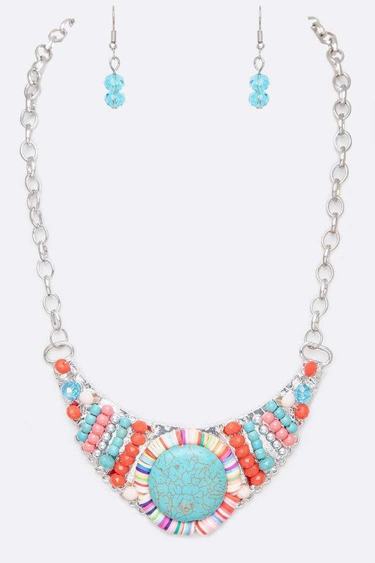 LA JEWELRY Round Stone Western Inspired Bib Necklace Set