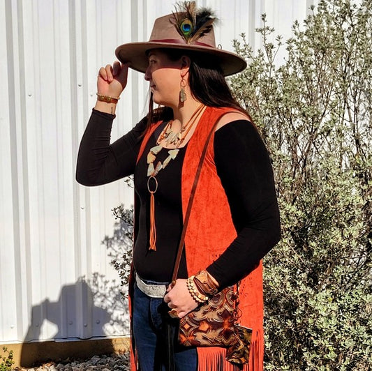 BeNAT Aqua Terra Slab Necklace w Copper Hoop and Fringe