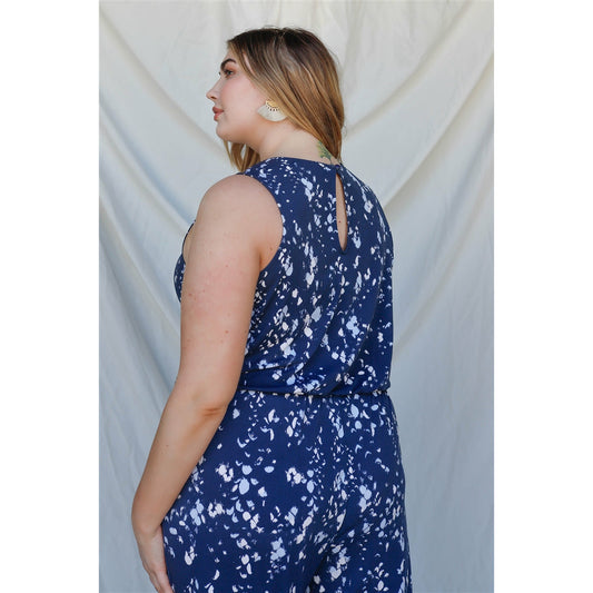 Plus Navy & Mint Feather Print Sleeveless Jumpsuit