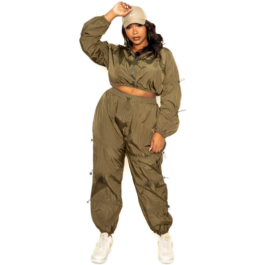 2 Piece Plus-size Active Zip Up Set With Cord Lock Detail