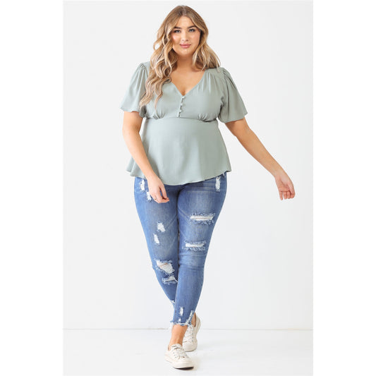 Plus Textured Casual A-line Top with Flare Short Sleeves