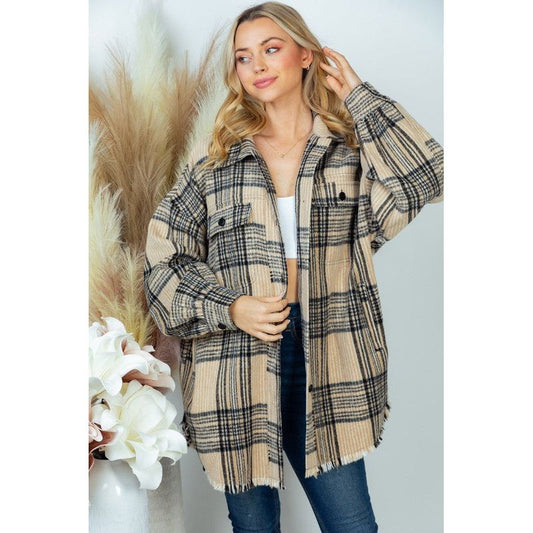 WHITE BIRCH PLUS SIZE Long Sleeve Plaid Woven Shacket