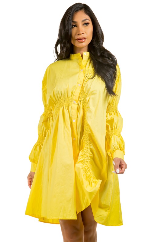 Claude Women's Stylish Full Size Asymmetrical Knee-length Buttoned Dress with Elastic Cord Design