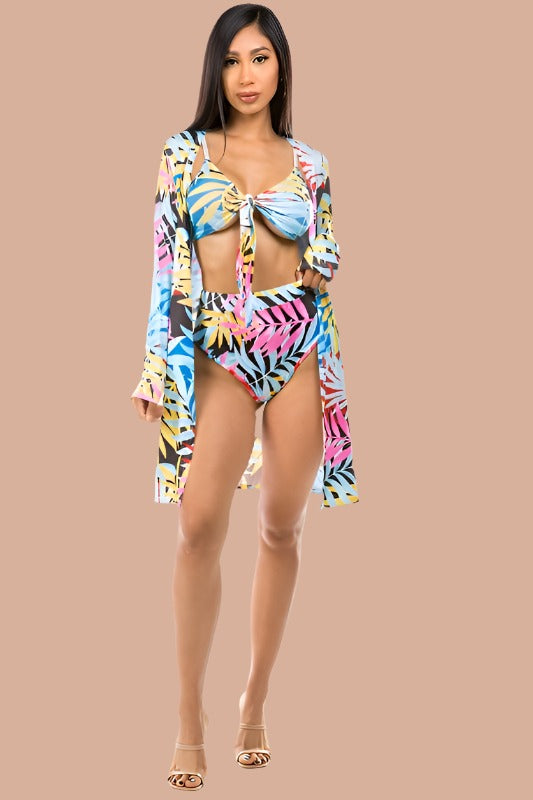 CLAUDE 3 Pieces Swimwear Set with Tropical Print