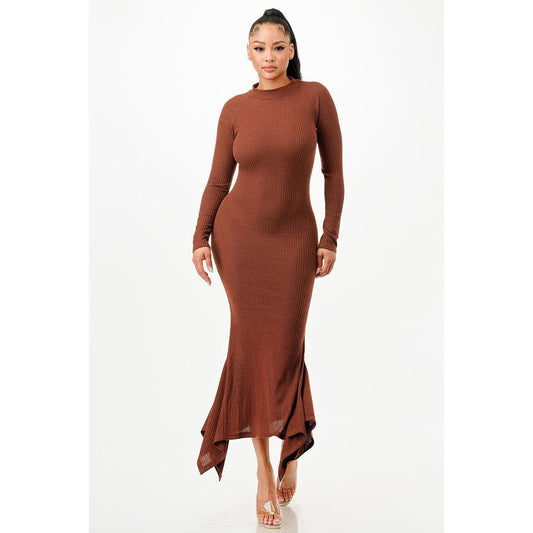 Soft Faux Wool Long Knit Dress with Long Sleeves