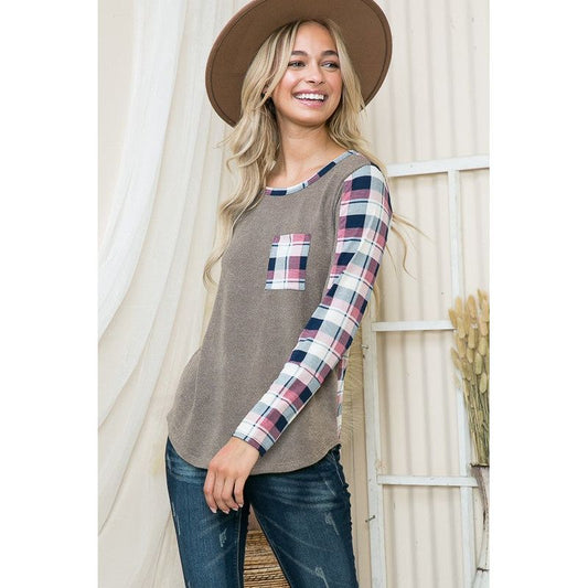 EG FASHION Plus Checker Sleeve Sequin Pocket Tunic