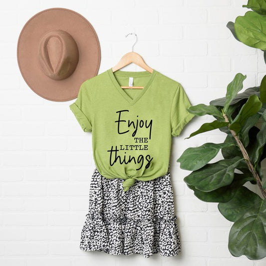 Olive & Ivory Women's "Enjoy the Little Things" Script Graphic V-Neck Tee