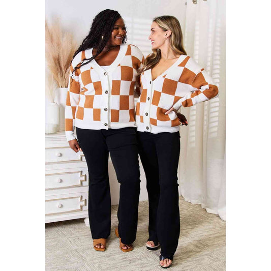 DOUBLE TAKE Button-Up V-Neck Dropped Shoulder Cardigan