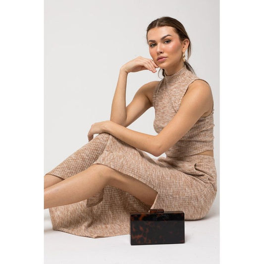 LE LIS Criss Cross Halter Band Sweater Bodysuit