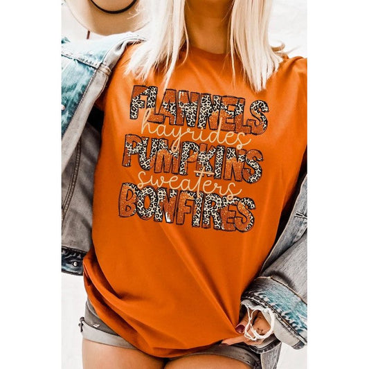 COLOR BEAR " Flannels, Pumpkins, Bonfire" Thanksgiving Fall Graphic T-shirt