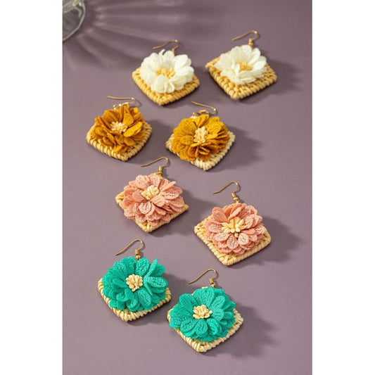 LA3 ACCESSORIES Straw Square Hoop with Fabric Flowers