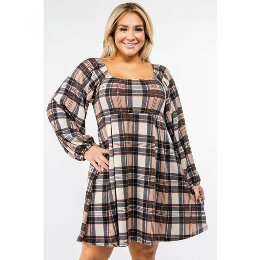 Robe mi-longue à manches ballon à carreaux EG Fashion Plus