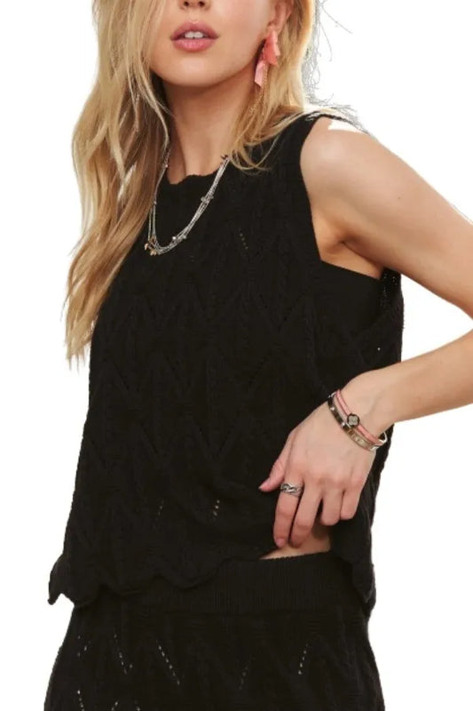 ADORA Crocheted Sleeveless Top with Scalloped Hem