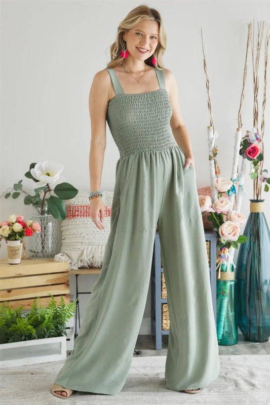 En venteADORA Smocking Top Wide Leg Jumpsuit