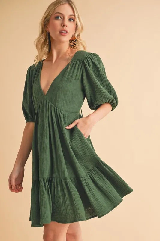 Aemi+Co Tied Back Ruffled Short Sleeve Mini Dress