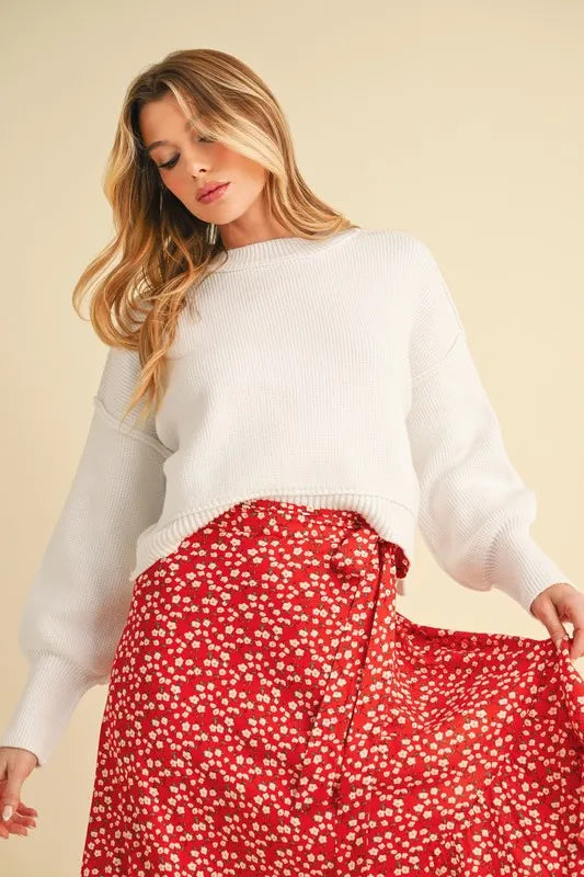 Aemi+Co Ribbed Hem Side Slit Round Neck Sweater