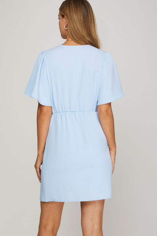 She + Sky Ruffled Surplice Short Flutter Sleeve Mini Dress