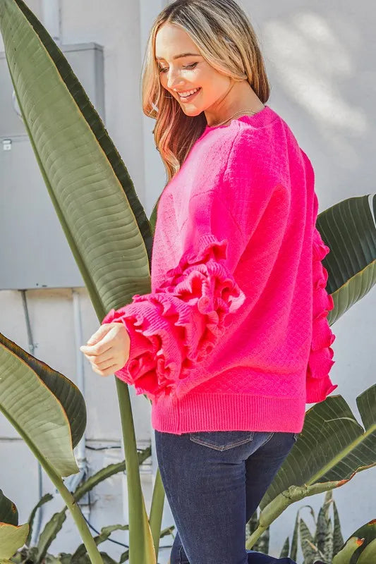 And The Why Puffy Ruffles Sleeve Cozy Sweater