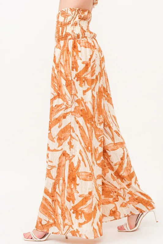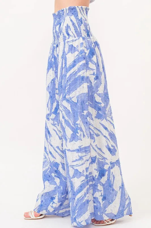 And The Why Smocked Tied Waist Abstract Print Wide Leg Pants