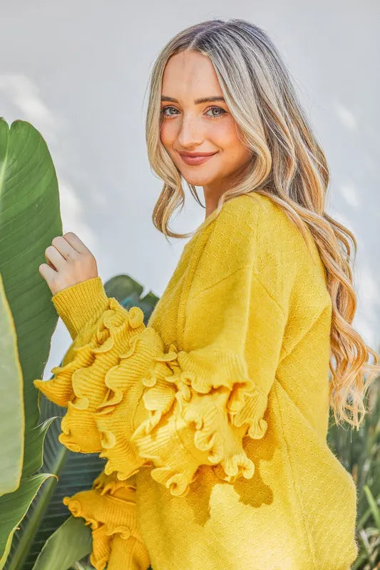 And The Why Puffy Ruffles Sleeve Cozy Sweater