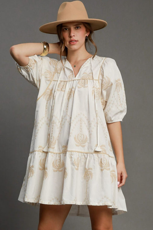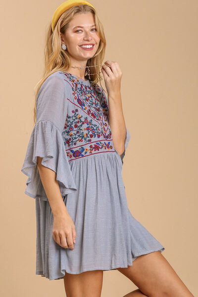 Umgee Full Size Embroidered Puff Sleeve Babydoll Dress Plus Size