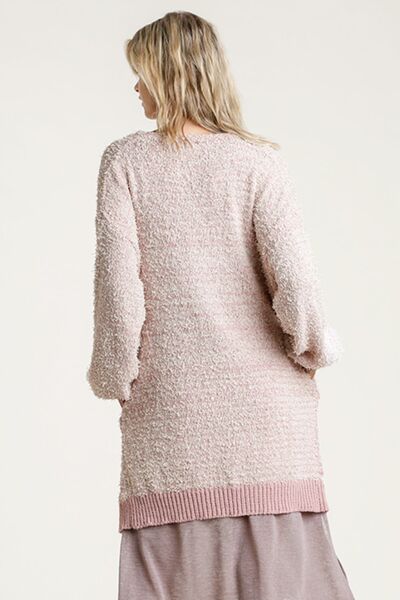 Umgee Full Size Ribbed Hem Open Front Longline Cardigan Plus Size
