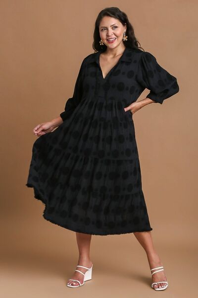 Umgee Full Size Solid Dotted Jacquard Midi Dress Plus Size