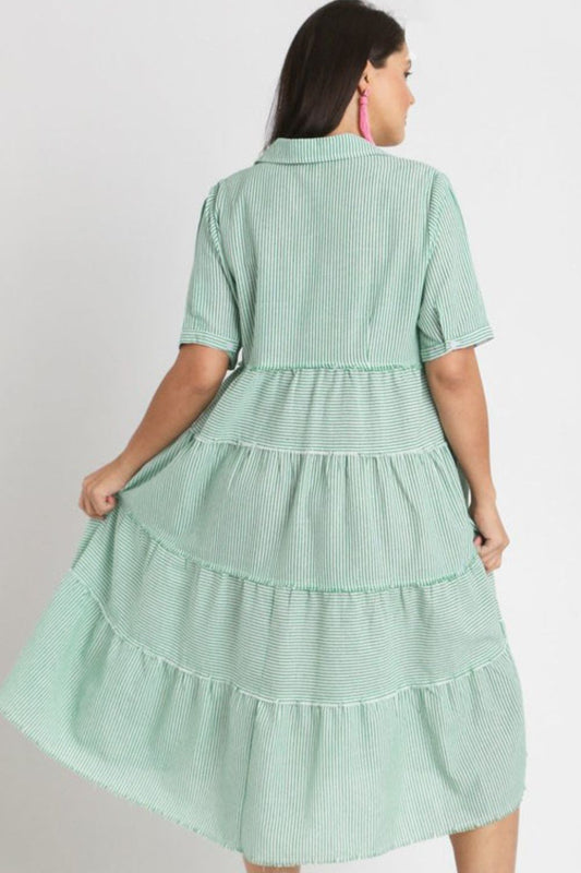 Umgee Full Size Stripe Tiered A-Line Midi Dress Plus Size
