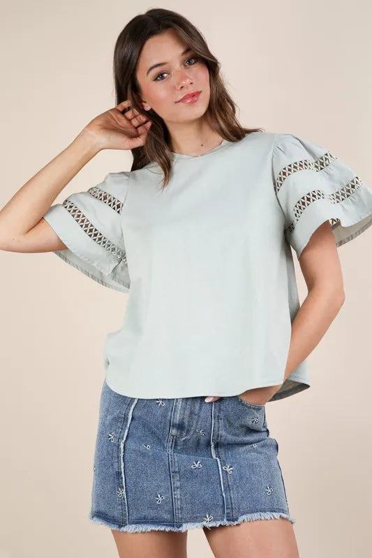 ÉpuiséVERY J Lace Trim Sleeve Top