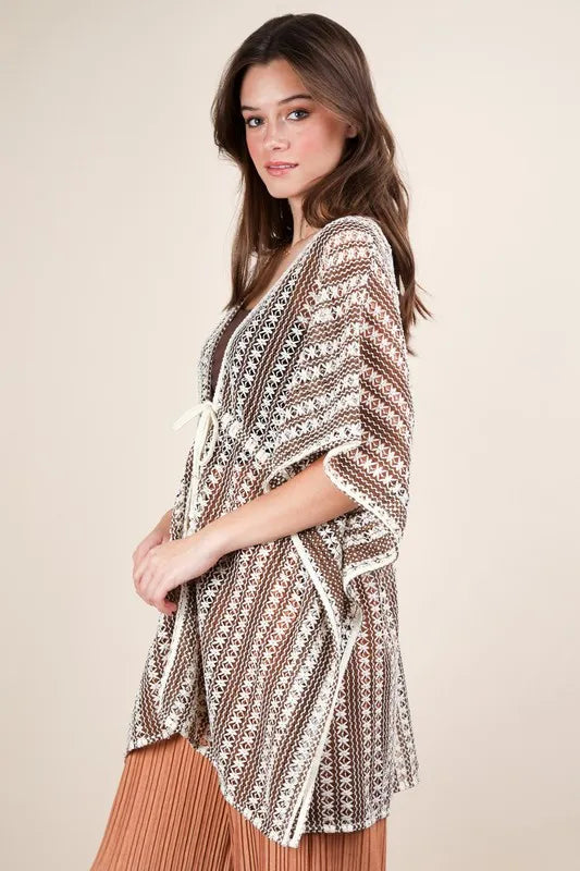 VERY J Full Size Striped Poncho Boho Cardigan Plus Size
