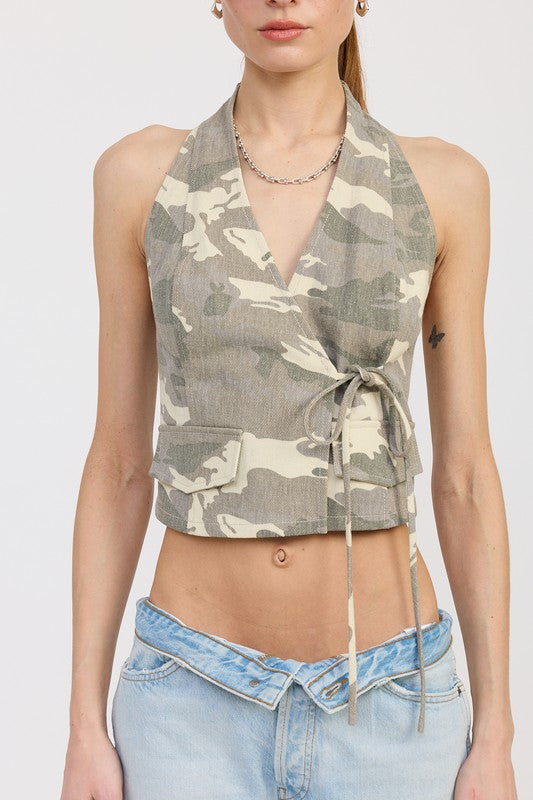 YO Tie Hem V-Neck Three-Quarter Sleeve Blouse